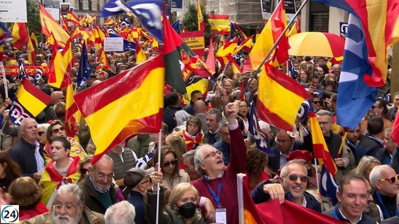 Vox ha movilizado a alrededor de 8.000 personas, según la Delegación del Gobierno, hasta la sede del PSOE, pero esta sin la participación de los 'populares', que ya se desmarcaron de las concentraciones frente a las sedes socialistas.