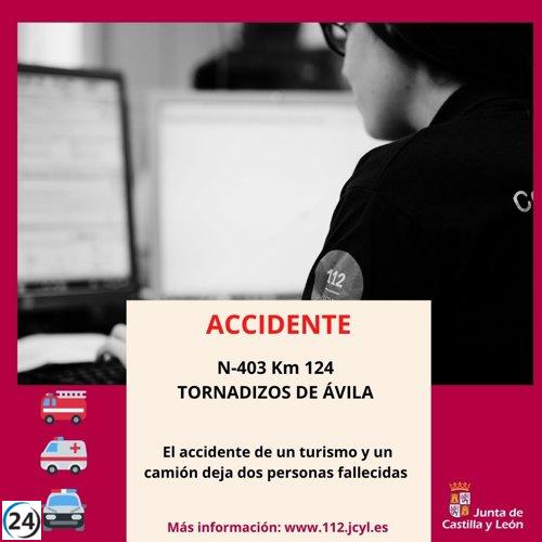 Accidente en la N-403 en Tornadizos deja dos muertos al colisionar un coche con un camión.
