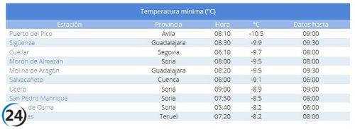 Seis de las diez temperaturas más frías del jueves se registran en Castilla y León, destacando Puerto el Pico (Ávila) en segundo lugar.