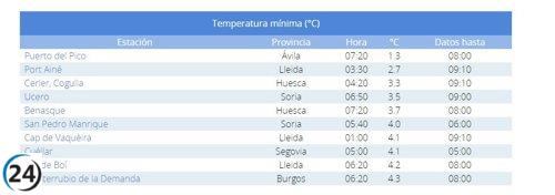Castilla y León lidera las temperaturas más frías de España, con cinco registros entre las diez más bajas