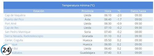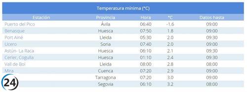 Puerto del Pico en Ávila marcó la temperatura más fría de España con -1,6ºC.