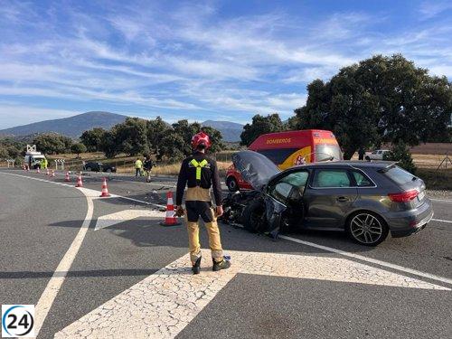 Grave accidente en El Barraco (Ávila): tres personas resultan heridas tras choque frontal y vuelco de un vehículo.