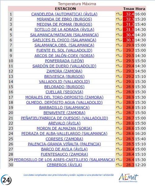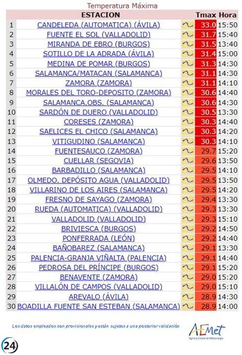 Candeleda se corona con las temperaturas más altas en Castilla y León, alcanzando los 32,4ºC este jueves.