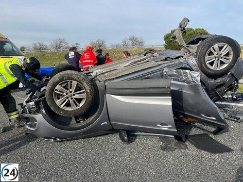 Trágico accidente en la A-6 de Valladolid: una mujer fallecida y dos heridos tras vuelco de turismo en San Pablo de la Moraleja.