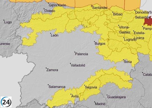 Aemet emite alerta amarilla por nevadas en León y Palencia, y por lluvias en Burgos.