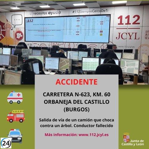 Trágico accidente en la N-623: conductor de camión pierde la vida al colisionar contra un árbol.