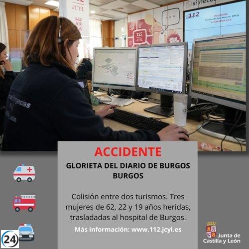 Accidente en la Glorieta del Diario de Burgos deja tres heridos.
