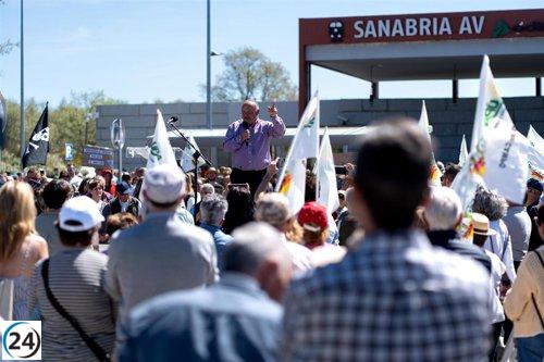 Miles de vecinos de Sanabria se manifiestan en contra del nuevo esquema ferroviario de Renfe.