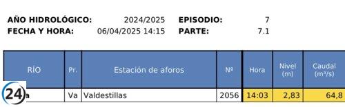La CHD emite alerta amarilla en el río Adaja en Valdestillas, Valladolid.