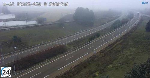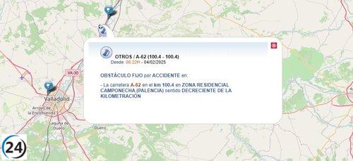 Accidente múltiple provoca más de 2 km de atascos en la A-62 en Dueñas.