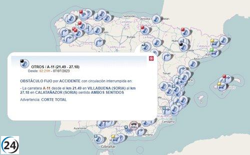 Camión cargado de legumbres vuelca en Golmayo, interrumpiendo la A-11