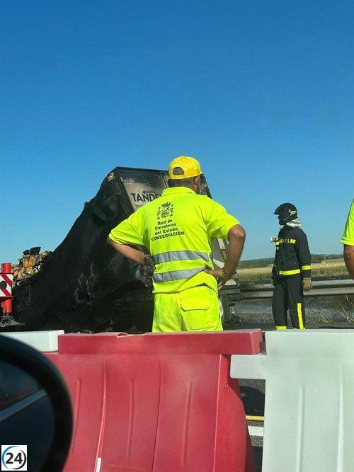 Reabierto tráfico en la A-52 hacia Benavente tras incendio de camión en Lubián (Zamora)