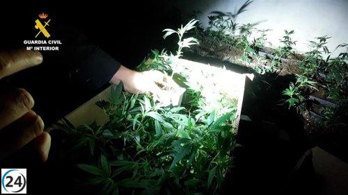 La Guardia Civil desarticula dos cultivos de marihuana en Burgos, arrestando a cinco personas.
