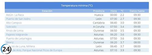 La ciudad leonesa de San Isidro alcanza la segunda posición en el ranking de temperaturas más bajas del país, marcando un gélido récord de -6,6 grados.