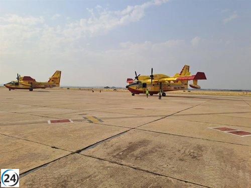 Aviones cisterna italianos se suman a la lucha contra el fuego en Barniedo, León.
