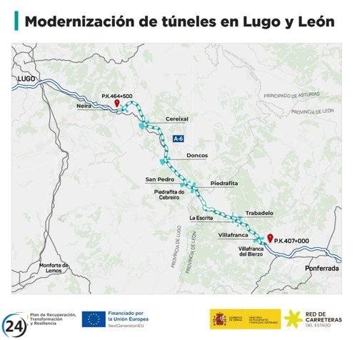 Cortes de tráfico en la A-6 por obras en túneles de Piedrafita hasta el jueves.
