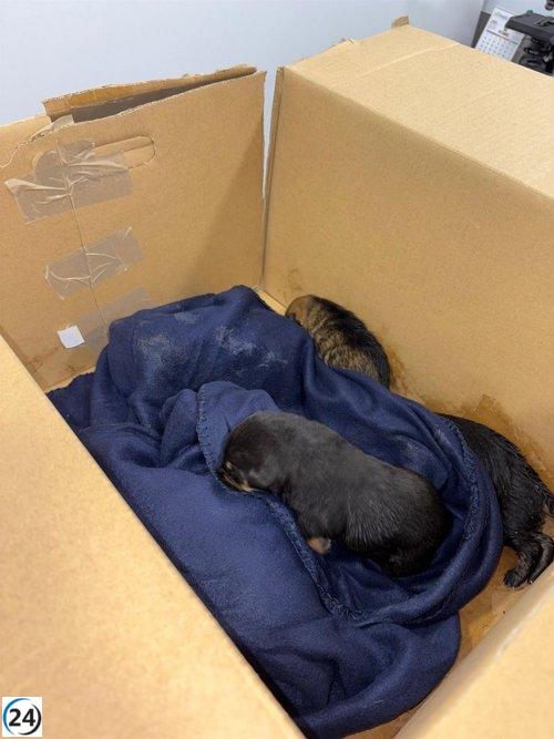 Cinco cachorros salvados de un cubo de basura en Palencia.
