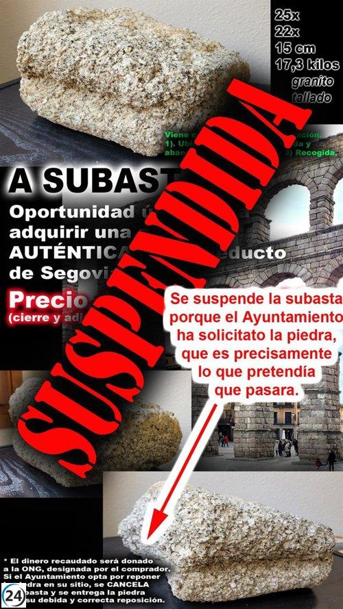 Un ciudadano de Segovia pone en venta una piedra del emblemático Acueducto.
