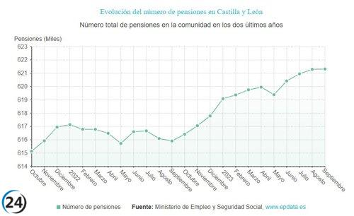 El número de pensiones ha aumentado un 0,88% en octubre, totalizando 621.819, comparado con el mismo periodo del año anterior.