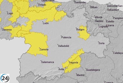 Alertas de nieve en Burgos, León, Palencia, Segovia y Zamora este sábado.